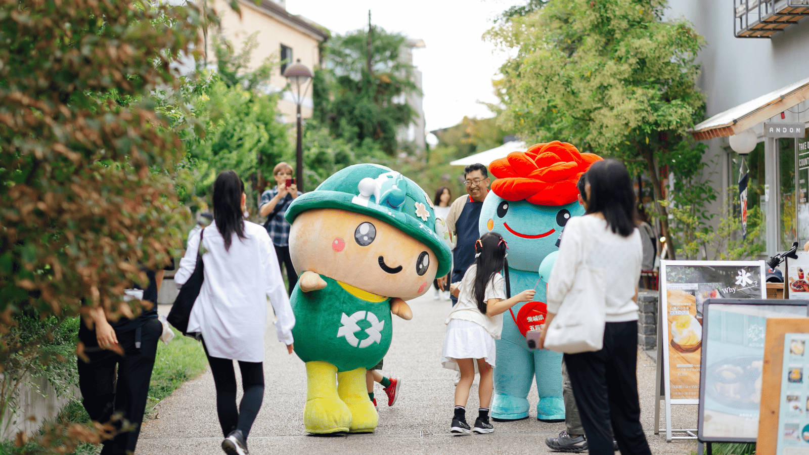 愛らしいキャラクターたちとの写真撮影を楽しむ姿があちこちで見られ、会場に華やかな雰囲気を添えています。