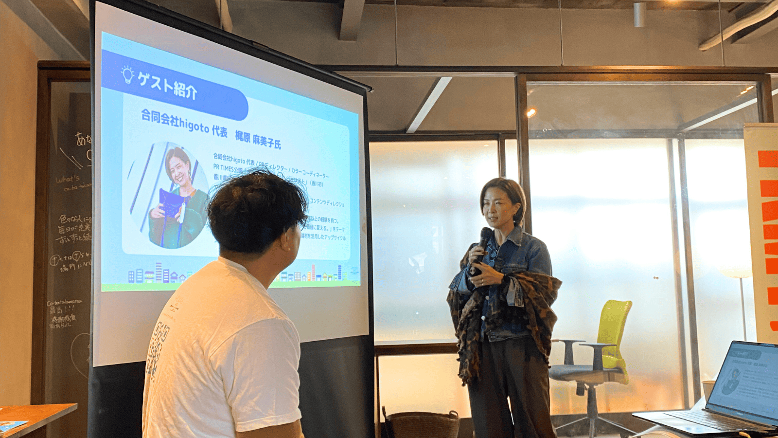 今回は移住をテーマにしたイベントでもあることから、ゲストトークも実施しました。ゲストには香川県出身でUターンを経験している合同会社higoto代表の梶原麻美子さんをお迎えしました。